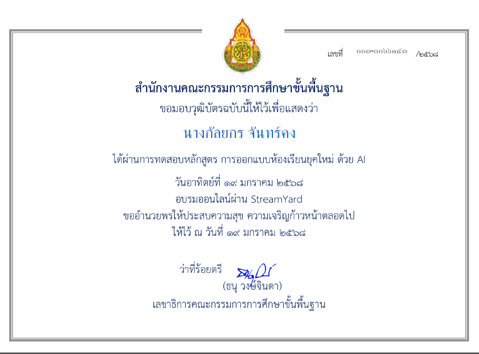 เกียรติบัตร ED CAFE AI ในชั้นเรียน