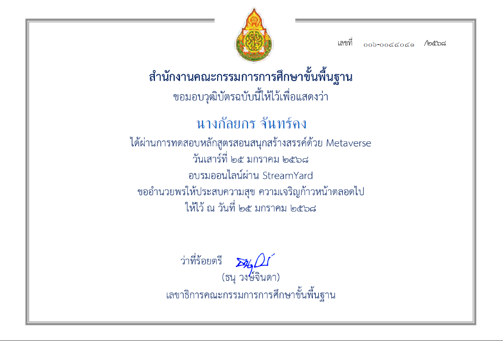 เกียรติบัตร สอนสนุกสร้างสรรค์ด้วยMetaverse