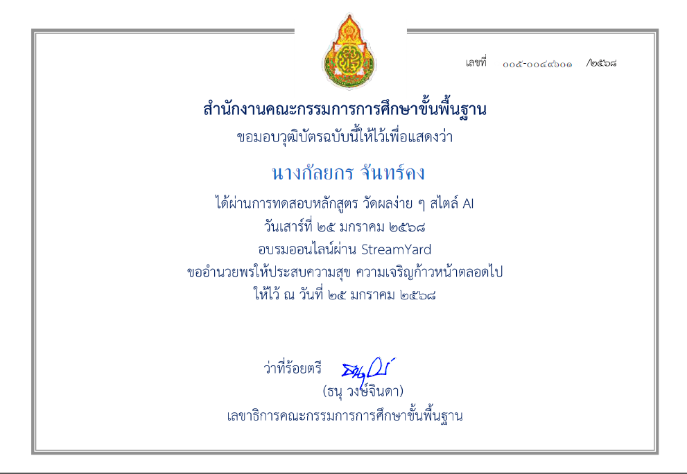 เกียรติบัตร ED CAFE AI ในชั้นเรียน